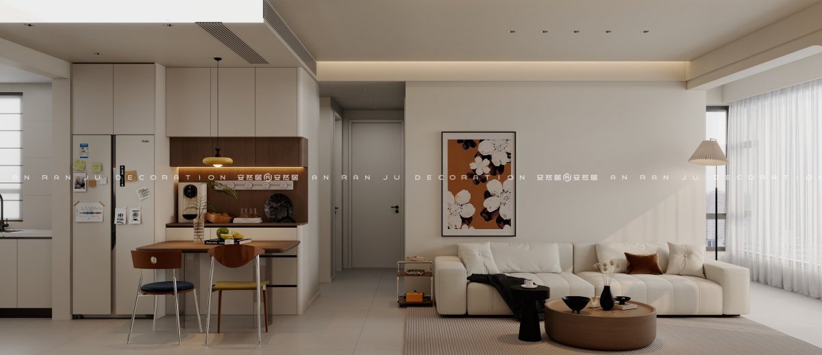 案例名稱:河風(fēng)印月98平面積:90-120m2風(fēng)格:奶油風(fēng)